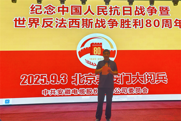 最后,安纜股份董事、總經理朱長彪強調:要弘揚中國人民在抗日戰爭中形成的以愛國主義為核心的團結統一、愛好和平、勤勞勇敢、自強不息的偉大名族精神。在今后的工作中,大家將以更加飽滿的熱情和更加昂揚的斗志,傳承和弘揚偉大抗戰精神,為企業的發展和國家的繁榮富強貢獻自己的力量。